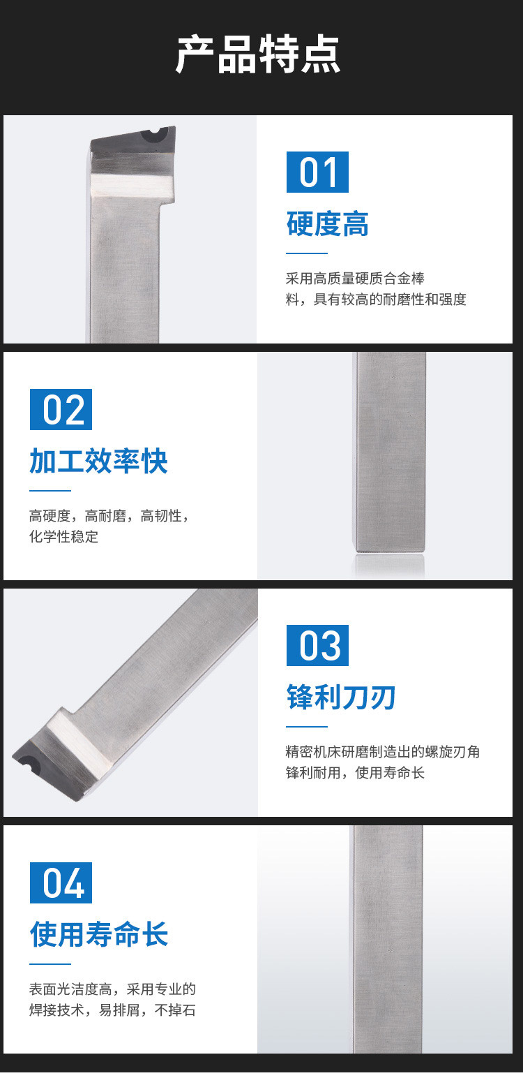 1.硬度高:采用高質(zhì)量硬質(zhì)合金棒料,具有較高的耐磨性和強(qiáng)度;